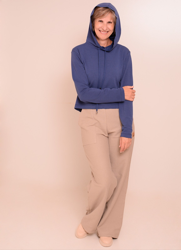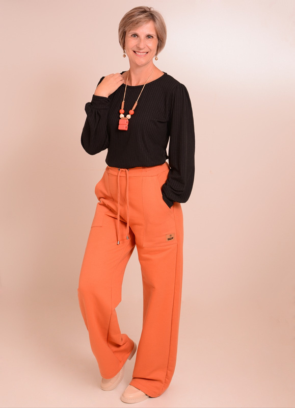 Calça Wide Leg em moletom diagonal