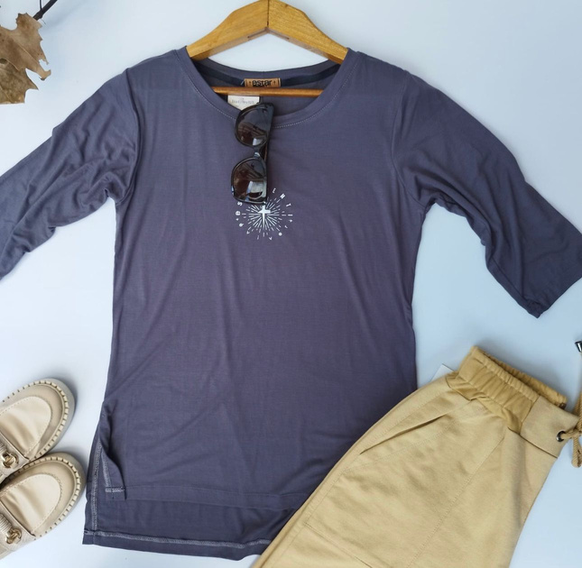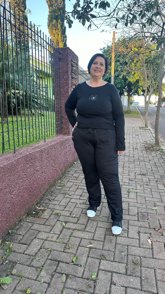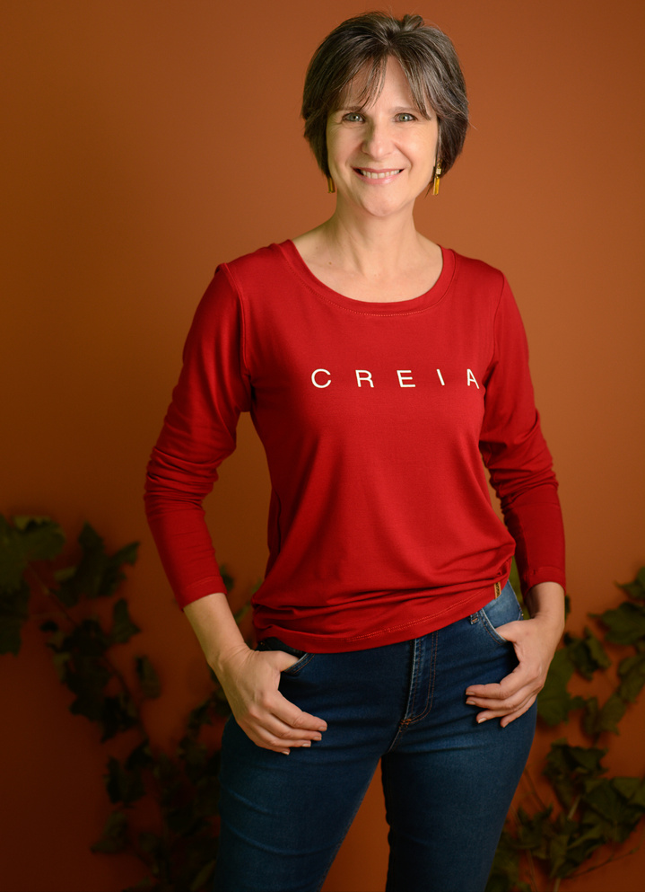 Blusa ML modelo Rute, modelagem alongada, abertura nas laterais.