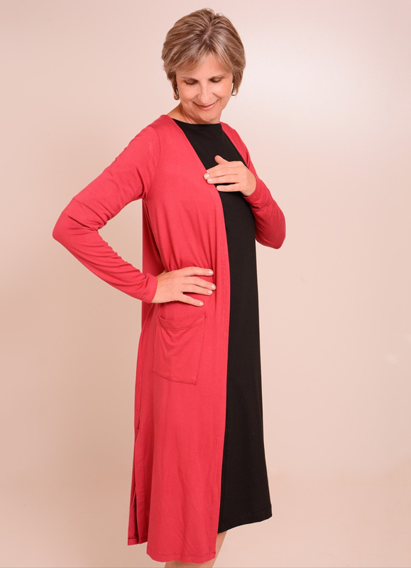 Cardigan ML em viscolycra, bolsos sobrepostos