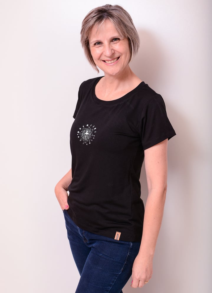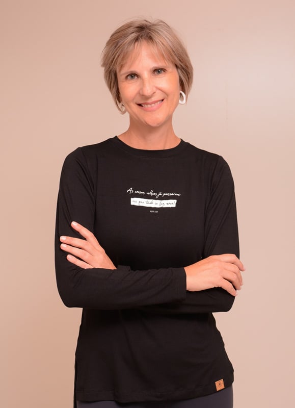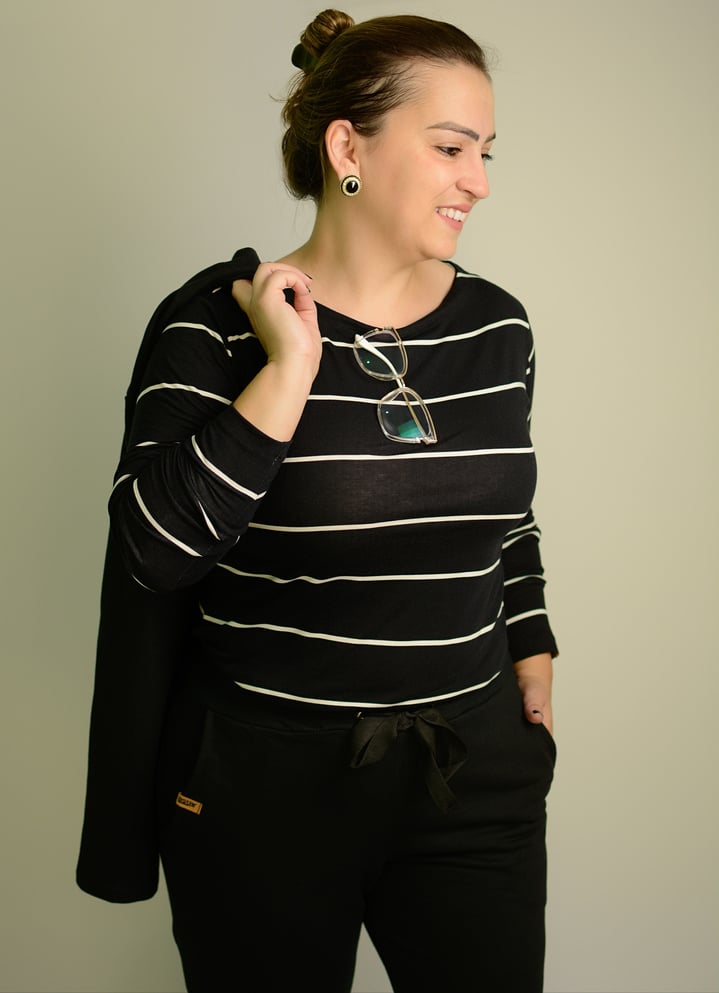 Blusa ML modelo Rute, modelagem alongada, abertura nas laterais.
