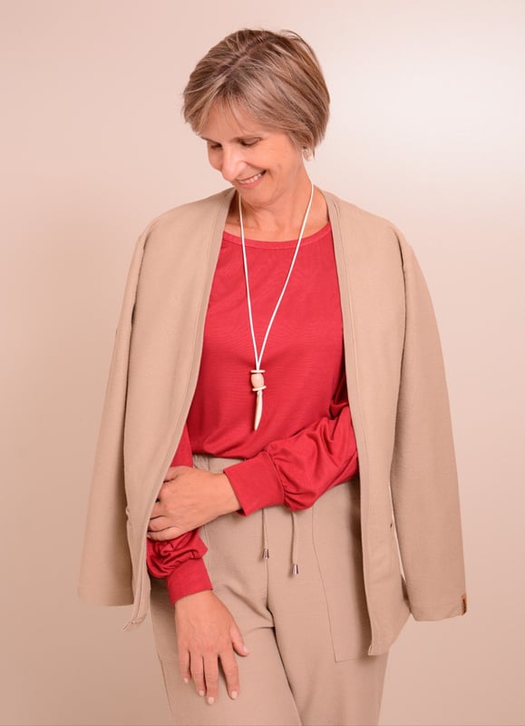 Cardigan ML em viscolycra, bolsos sobrepostos