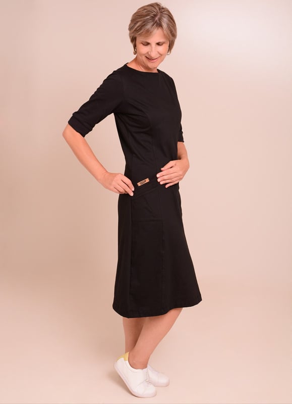 Vestido Midi Sara em meia malha 100% algodão fio 30 penteado modelo Evasê